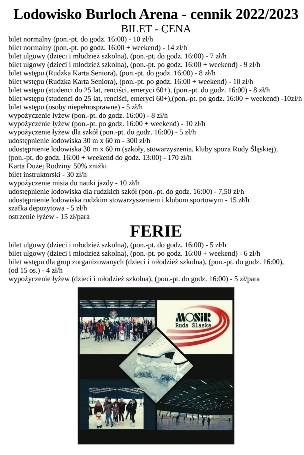 - > Cennik Lodowiska < -