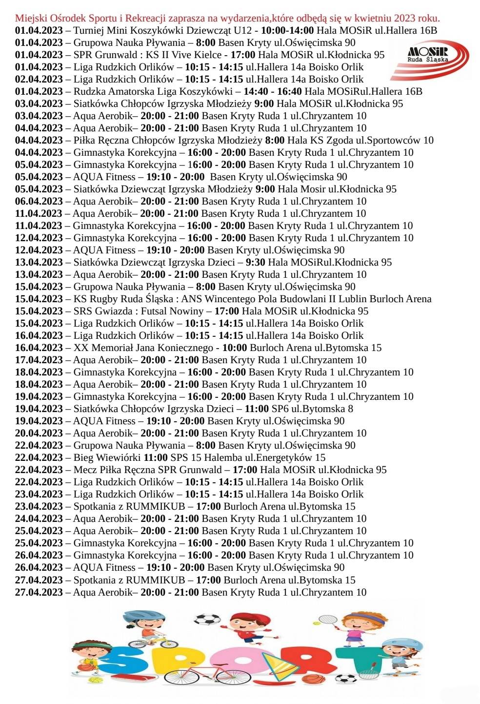 Miejski Ośrodek Sportu i Rekreacji zaprasza na wydarzenia, które odbędą się w kwietniu 2023 roku.